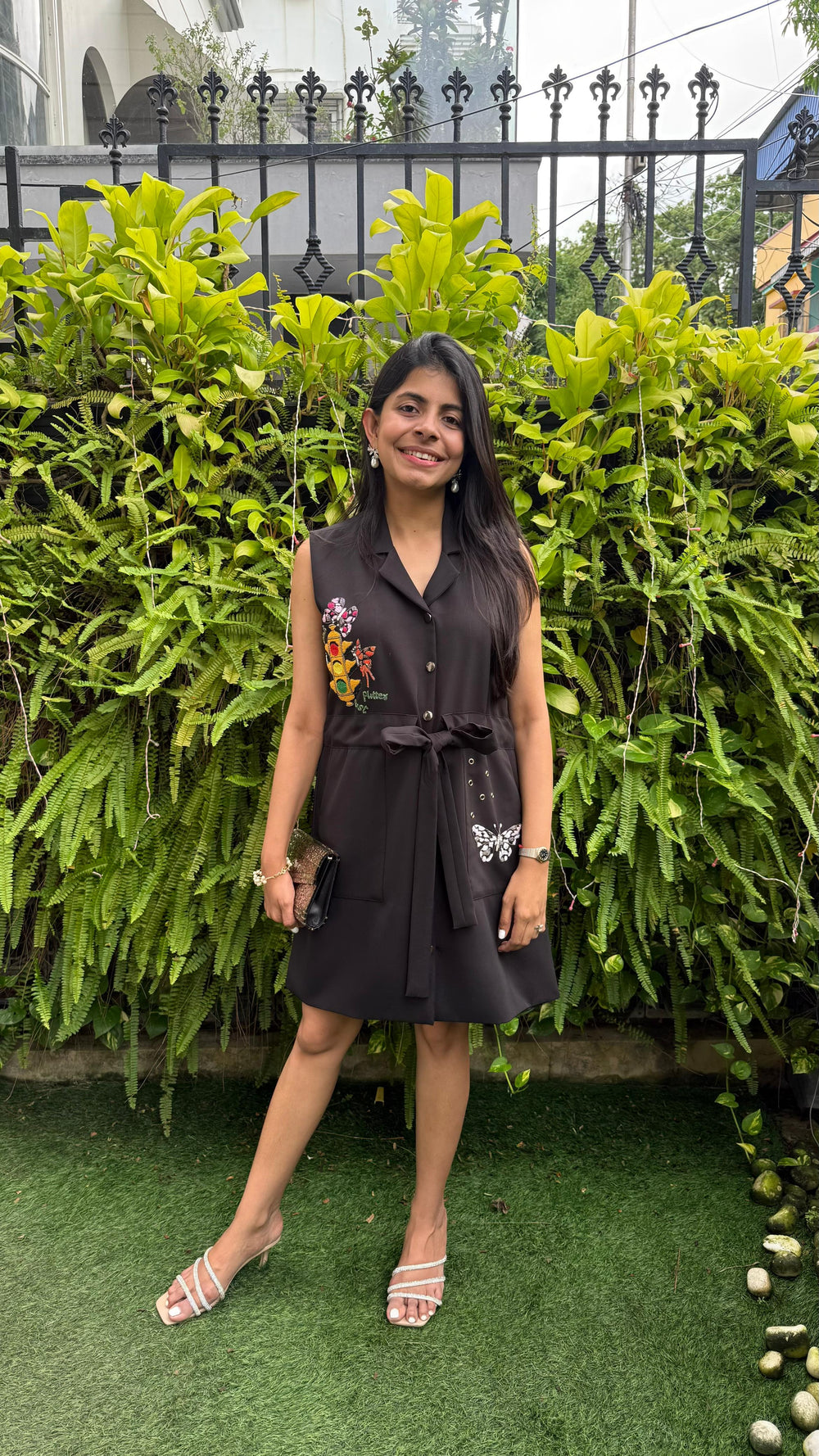 Embroidery highlights a traffic light on which butterflies are hovering and making it theirs'.