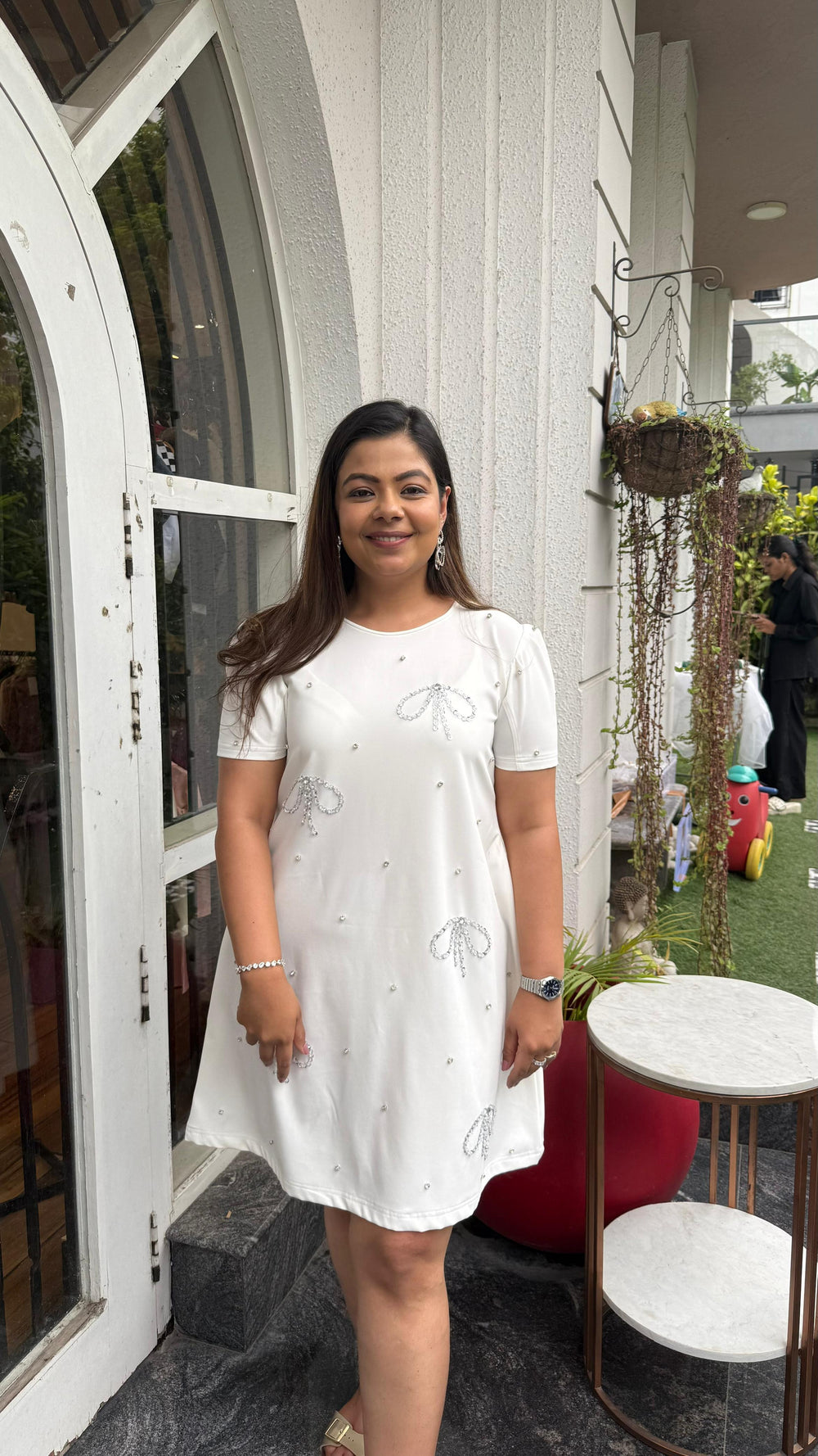 Silver sequins and stones embroidered bows