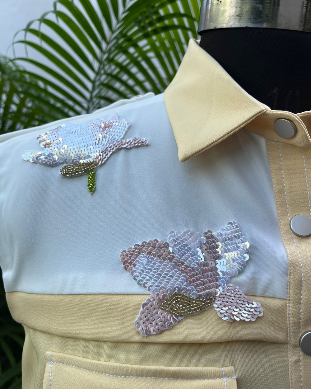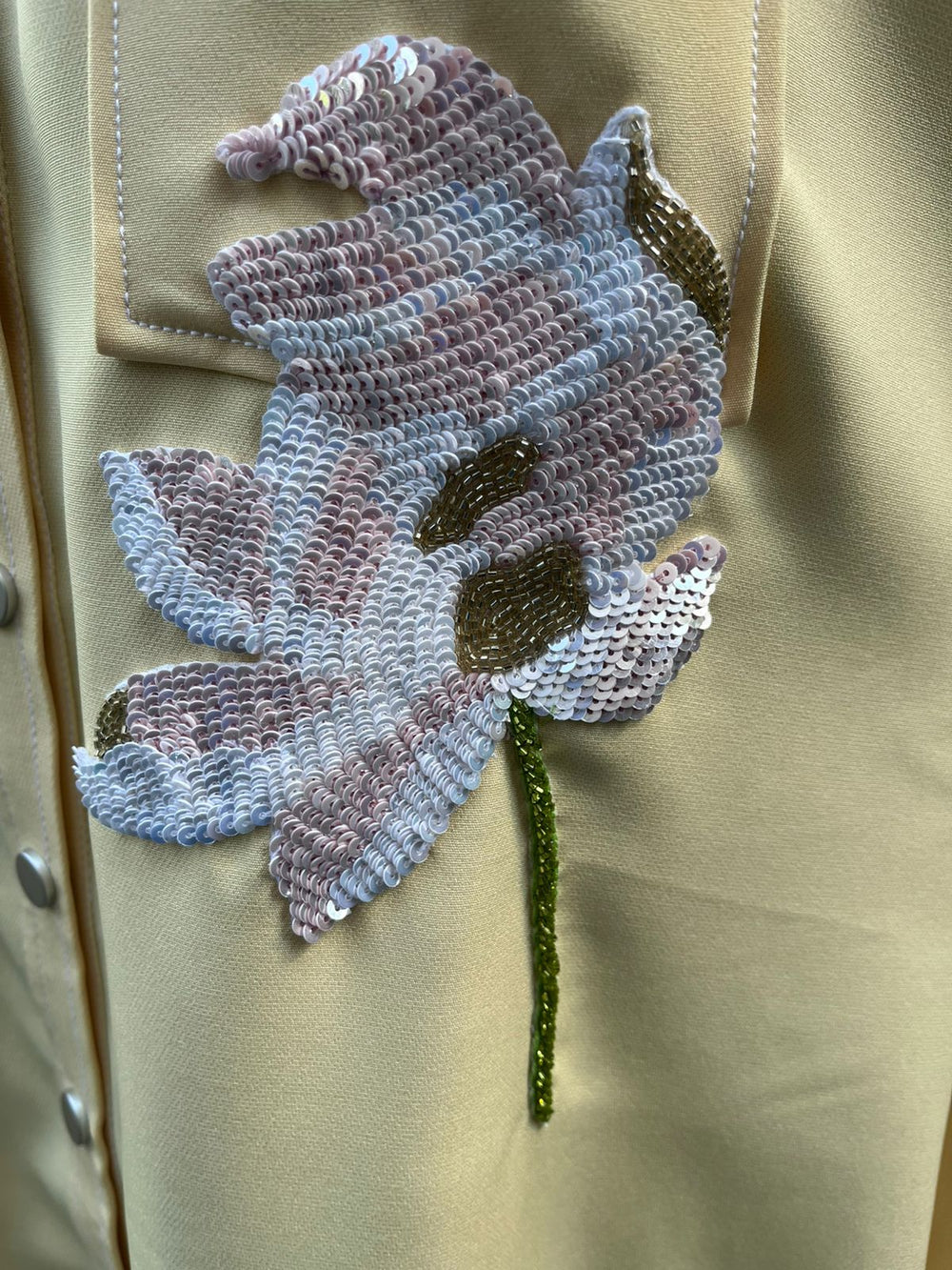 Large floral sequins embroidery, pockets